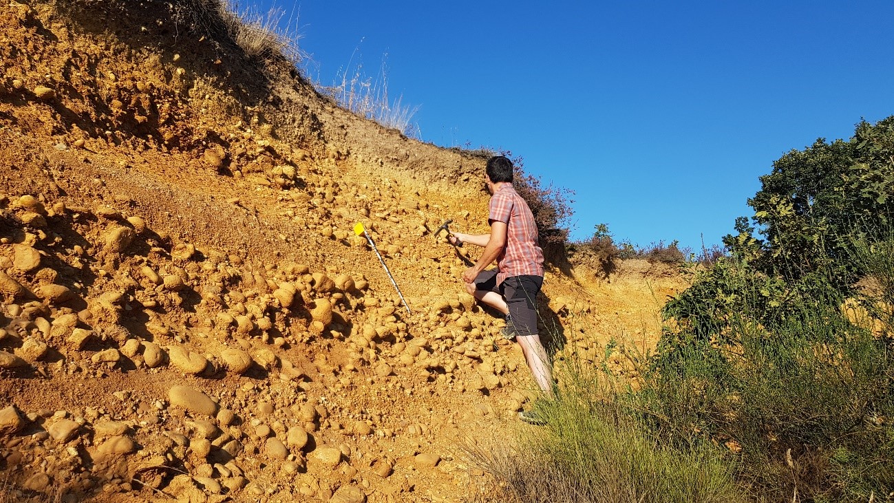 Pie de foto: Trabajo geológico estudiando los depósitos generados por la denudación cenozoica en el Geparque UNESCO Las Loras. Foto: Alfonso Benito.