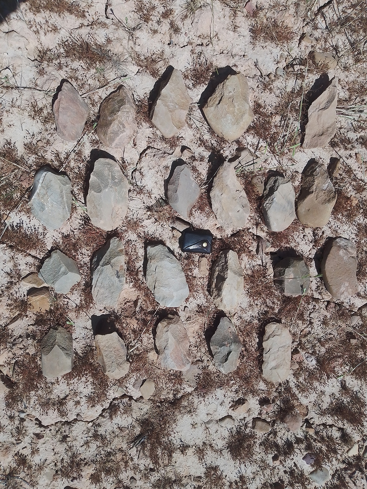 Conjunto de hachas de manos recuperadas en la prospección arqueológica.