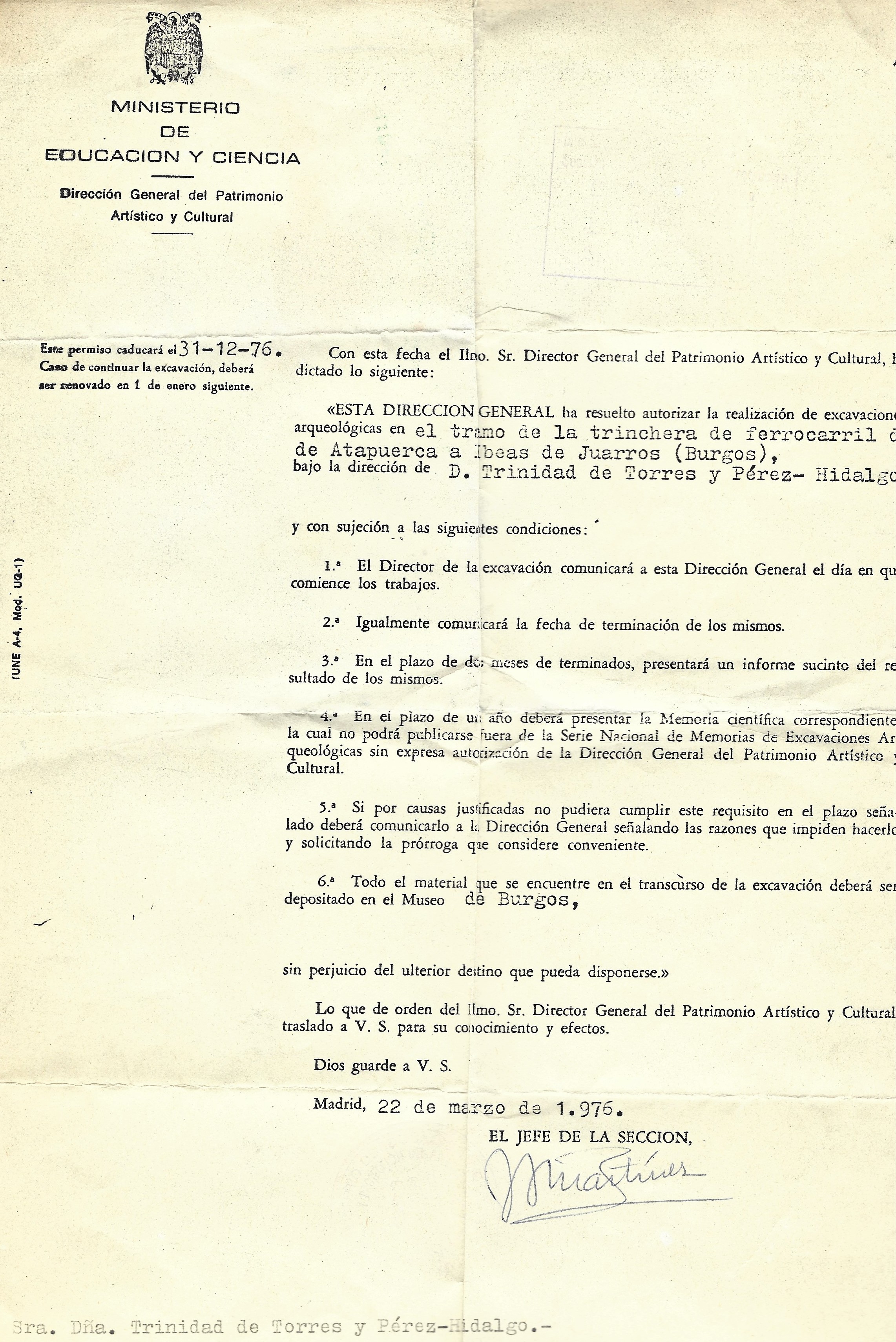 En una estancia de estudios en el Instituto Provincial de Paleontología de Sabadell, que, a la sazón, dependía de la Diputación provincial (ahora se denomina Instituto Catalán de Paleontología Miquel Crusafont), su director el Dr. M. Crusafont i Pairo, me enseñó algunos, escasos restos de oso que provenían de la Trinchera del Ferrocarril. Por solicité Permiso de Excavación, que me fue concedido el 22 de marzo de 1976.