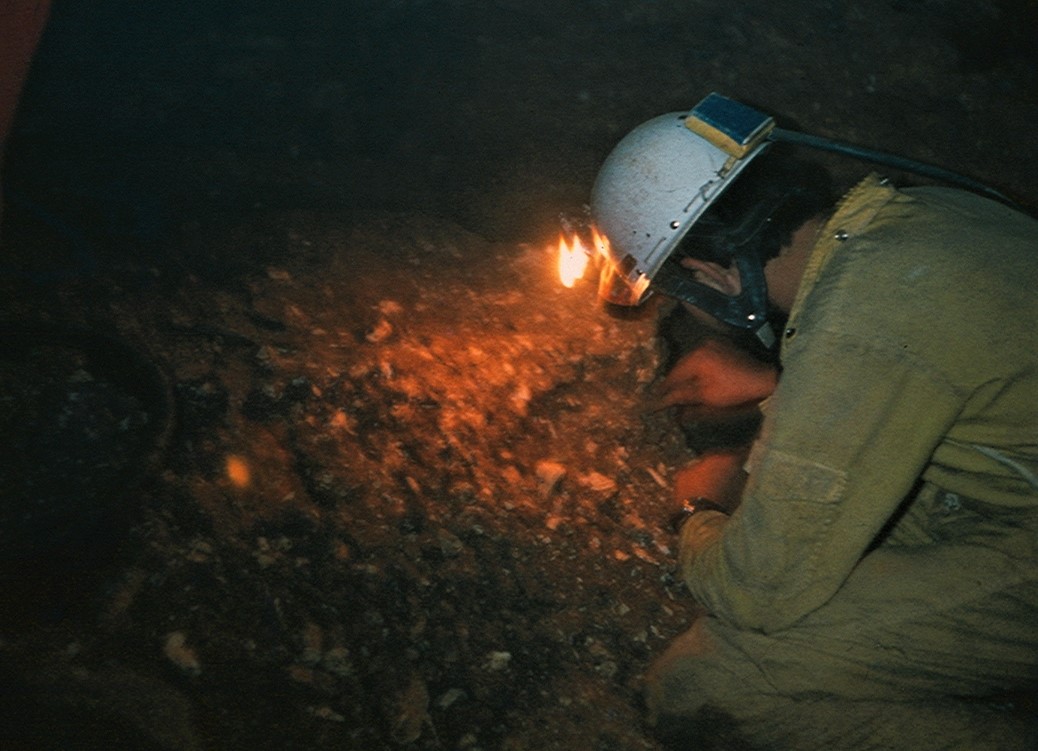 Un espeleólogo del G.E. Edelweiss, que colaboraba con la excavación en la Trinchera del Ferrocarril, T. Antón, me comentó que en la base de la Sima de los Huesos, al final de Cueva Mayor, aparecían abundantes restos de oso, aunque todo el conjunto estaba muy destrozado por la acción de los furtivos. Se formó un equipo de excavación nucleado por C. Puch, arqueólogo, y R. Cobo, geólogo, y comenzó la extracción de material paleontológico, muy destrozado y mezclado con material reciente: colillas, cajetillas de tabaco, plásticos etc.