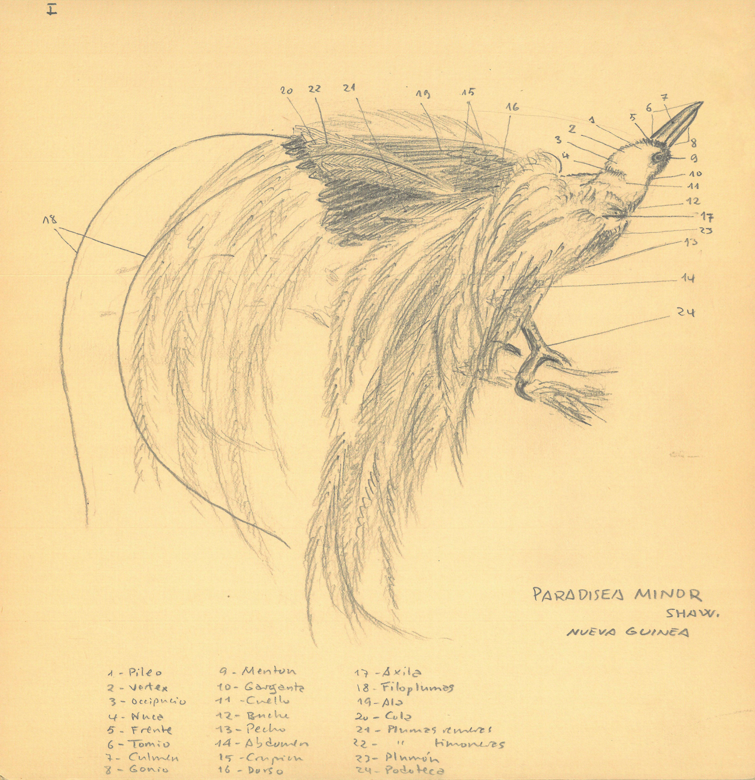 “Ave del paraíso” / Cuaderno de dibujos y aves de Emiliano Aguirre. 1954.