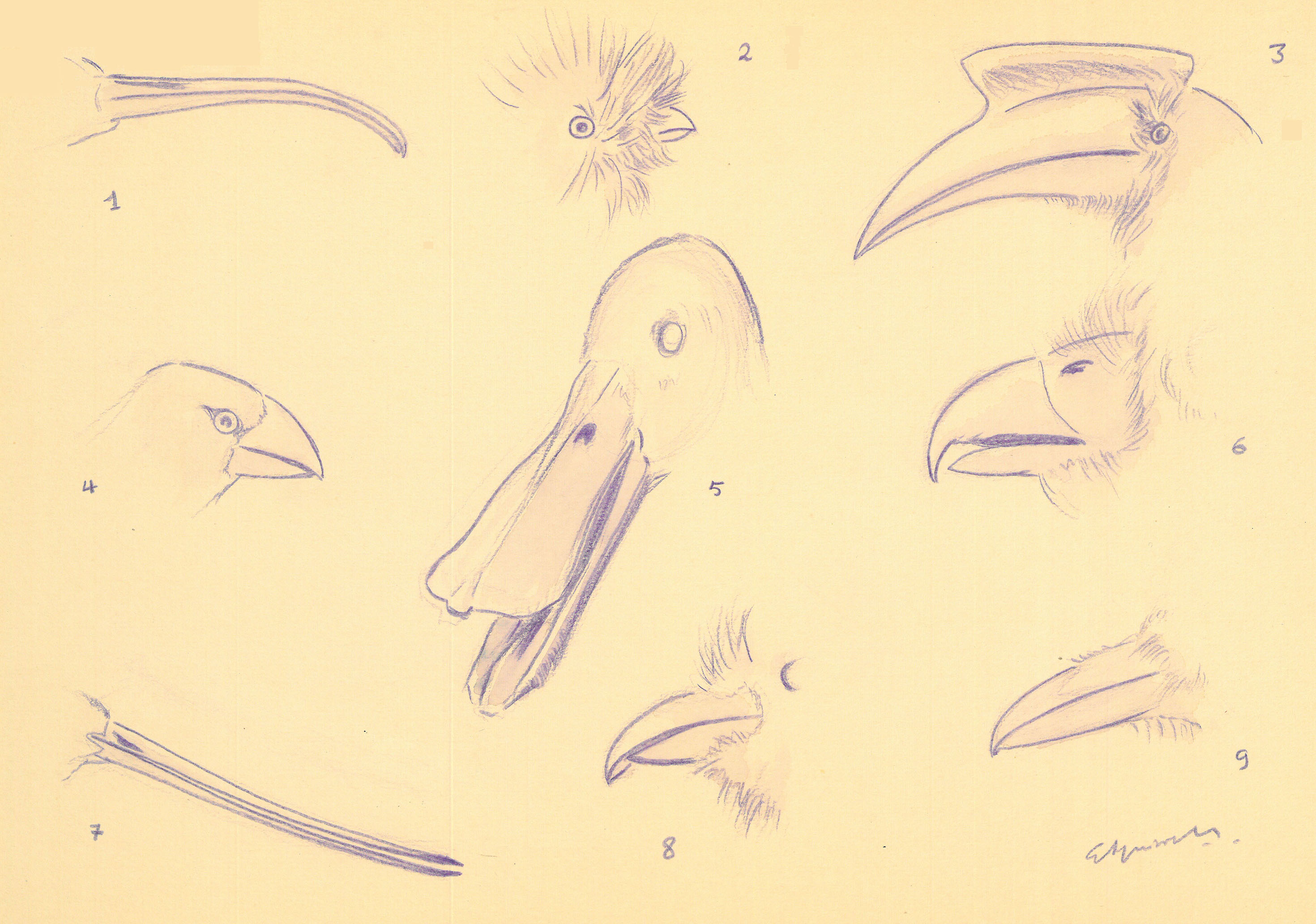 “Picos de aves” / Cuaderno de dibujos y aves de Emiliano Aguirre. 1954.