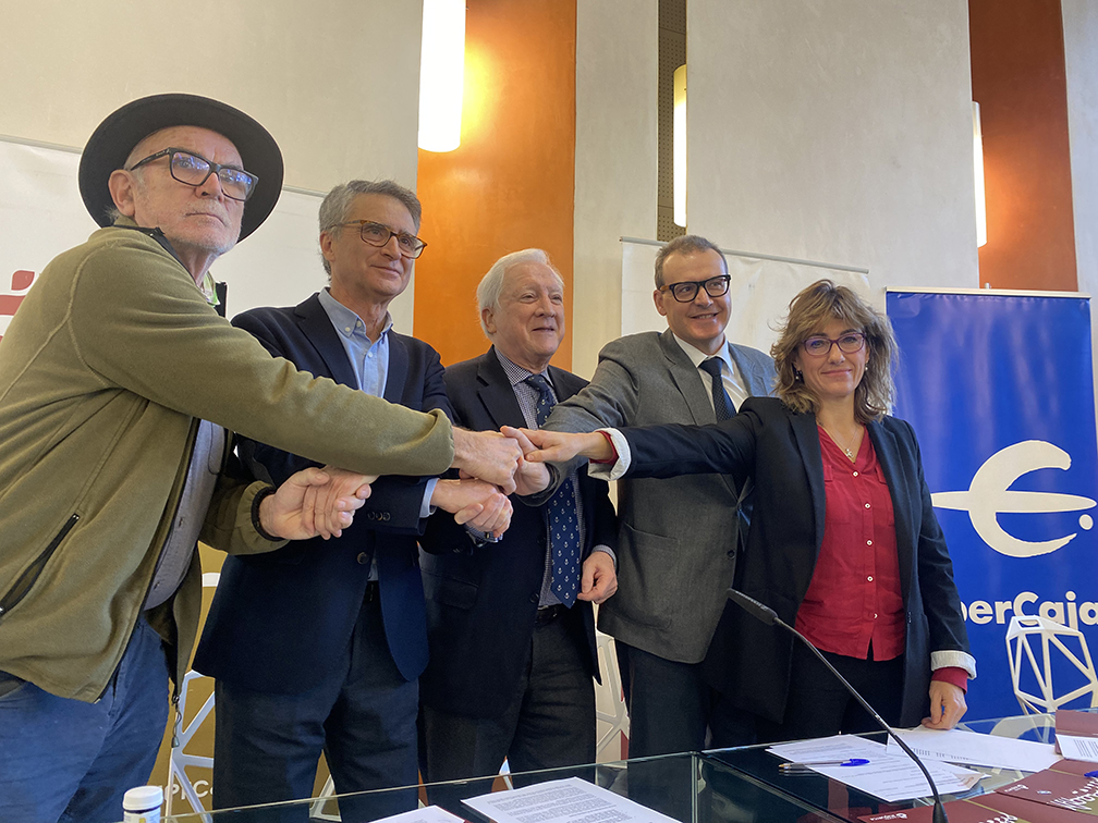 El convenio lo han firmado el presidente de la Fundación Círculo, D. Emilio de Domingo; el director territorial de La Rioja, Burgos y Guadalajara de Ibercaja, D. José Ángel Pérez Álvarez; el presidente de la Fundación Atapuerca, D. Antonio M. Méndez Pozo; y vicepresidente de la Fundación Atapuerca, Eudald Carbonell.