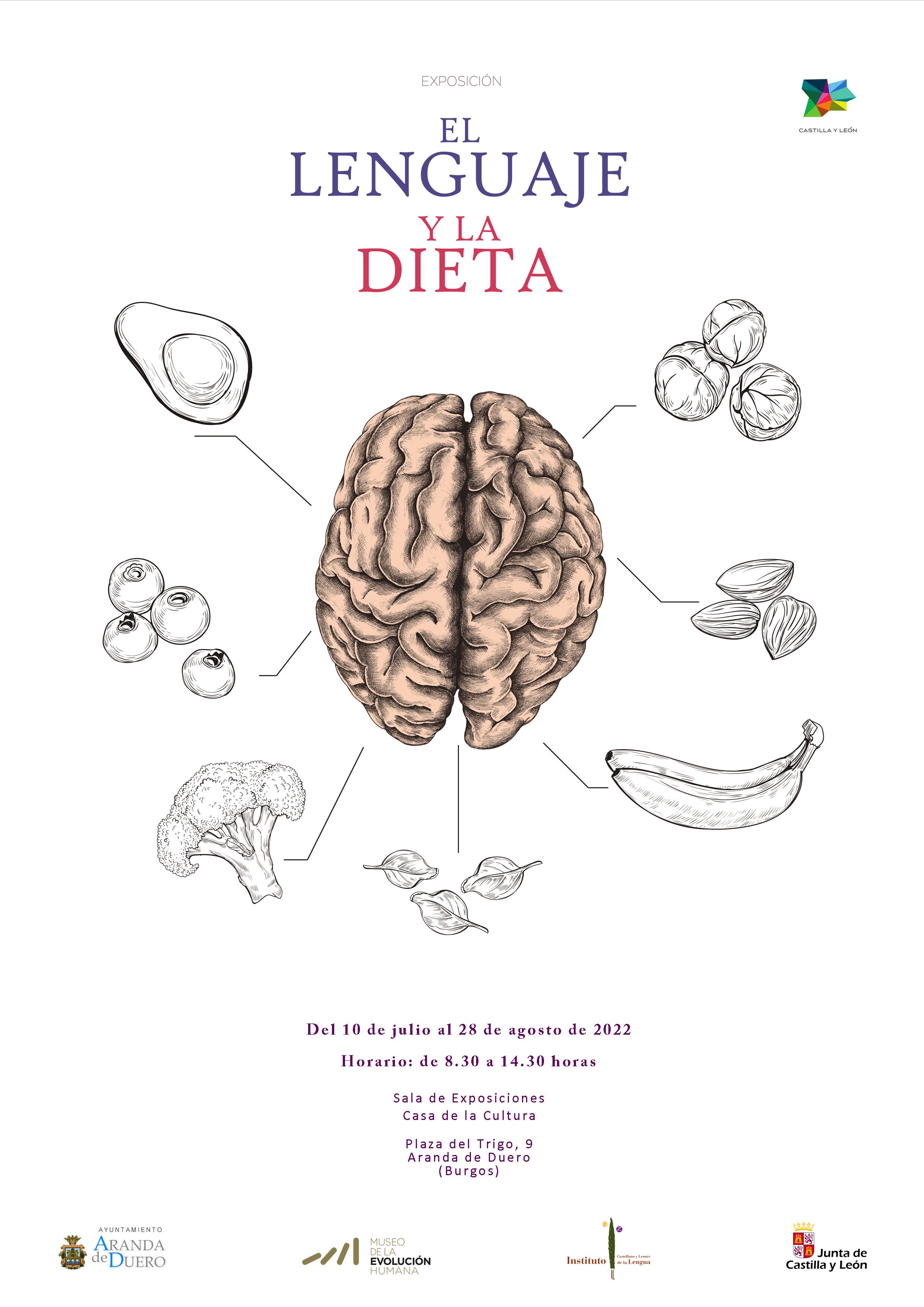 ARANDA DE DUERO (10.07.23).- El Ayuntamiento de Aranda de Duero y la Fundación Instituto Castellano y Leonés de la Lengua promueven en la Casa de Cultura de la capital ribereña la exposición ‘El lenguaje y la dieta’, producida con la colaboración del Museo de la Evolución Humana (MEH) de Burgos. Este proyecto lleva a primer plano la importancia que la alimentación ha tenido en el proceso de desarrollo biológico e intelectual del ser humano, convirtiéndose en marcador social que forma parte directa de la cultura. La exposición, que abre sus puertas al público el lunes 10 de julio, se articula en torno a una serie de paneles que detallan cómo ha sido el proceso evolutivo y su sucesiva transformación desde la aparición de los homínidos, prestando atención también a los distintos recetarios y su trasmisión oral y escrita.