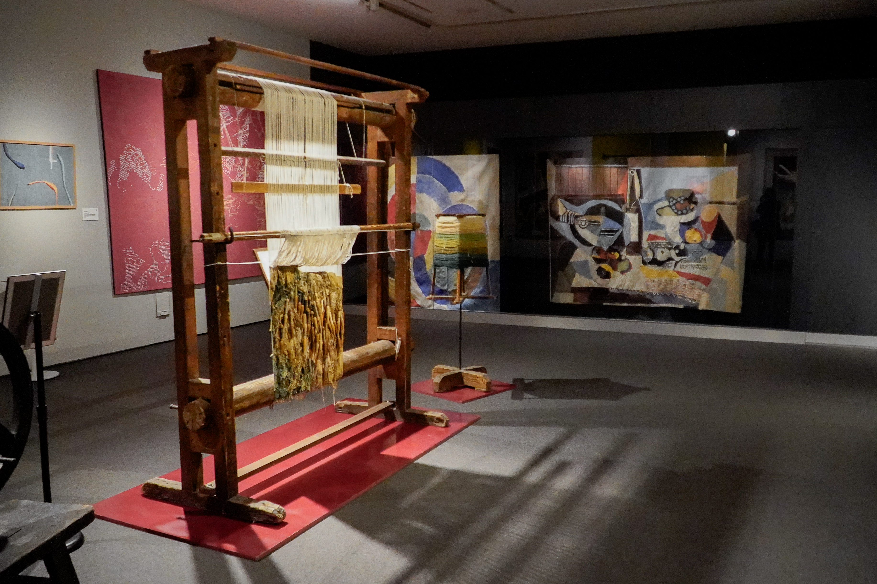 En la exposición también se muestran telares, ruecas y devanaderas que componen el instrumental tradicional sobre el que se apoya la creación de los principales elementos textiles decorativos que se exhiben en esta muestra. Perfectamente conservados después de siglos de uso, la privilegiada visión de conjunto de estos elementos en nuestros obradores transporta al visitante a épocas pasadas, en las que la cuidada producción artesanal inundaba todos los ámbitos de la creación.